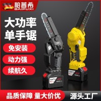 定制柏普希4寸6寸锂电链锯充电锯手提家用小型伐木单手砍树修枝锯