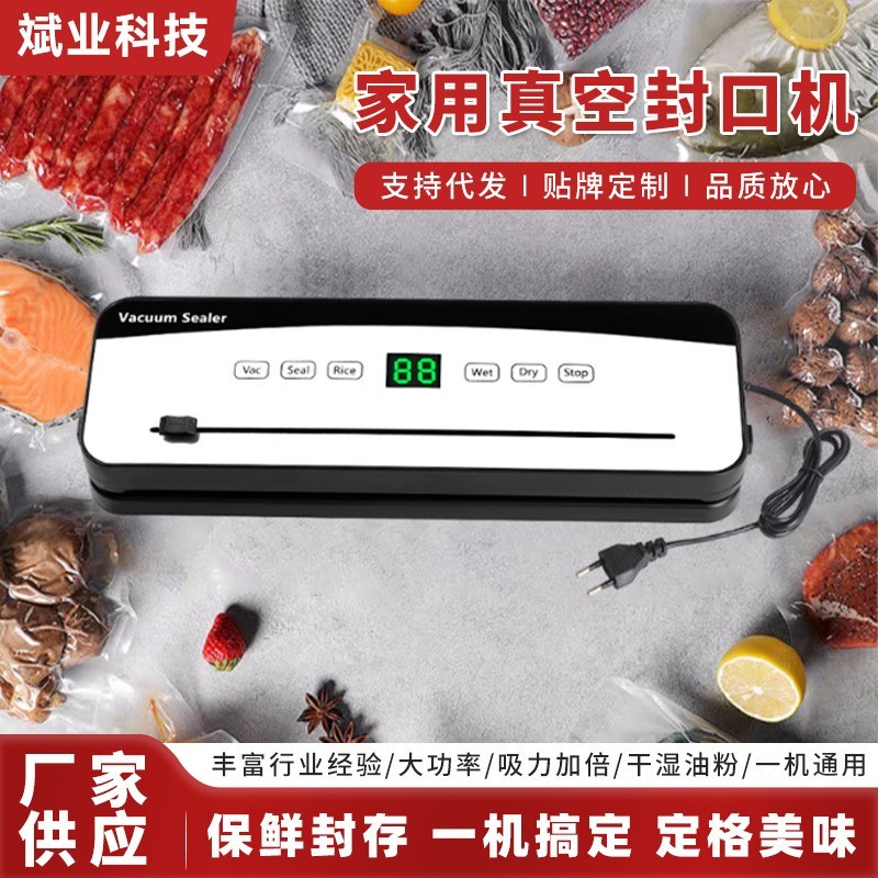 定制白色英文美规数显D款家用真空封口机吸力加倍干湿两用保鲜机