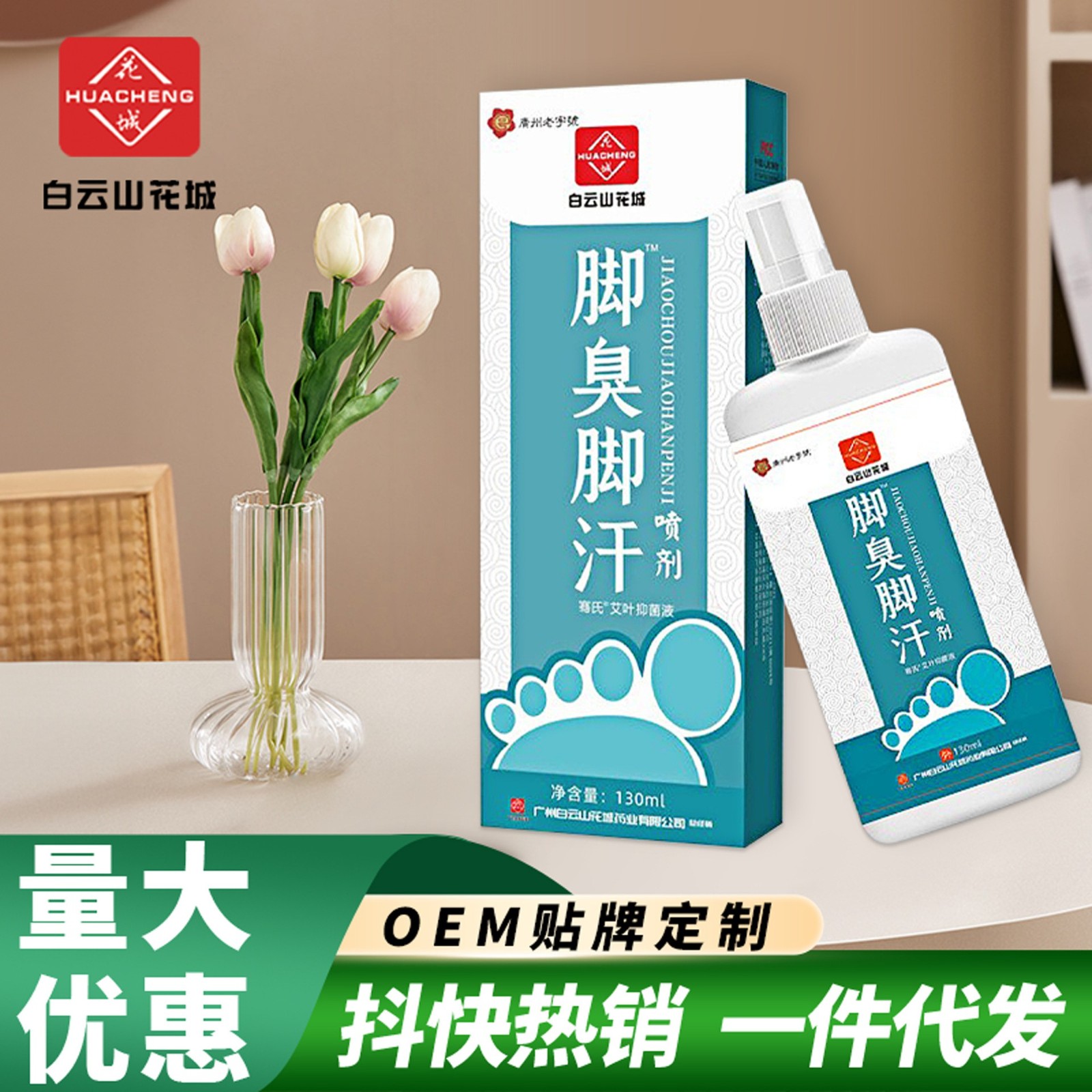 定制白云山花城脚臭脚汗喷剂家用足部护理脚痒烂脚丫臭脚粉