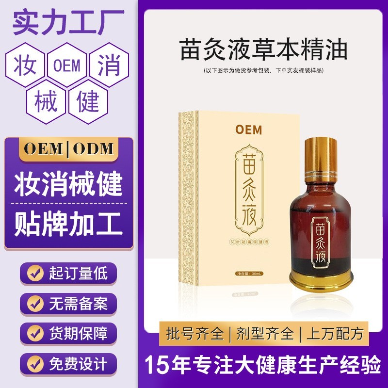 定制苗灸液草本按摩精油艾灸贴牌滚珠肩颈腰腿透骨液活络油代加工