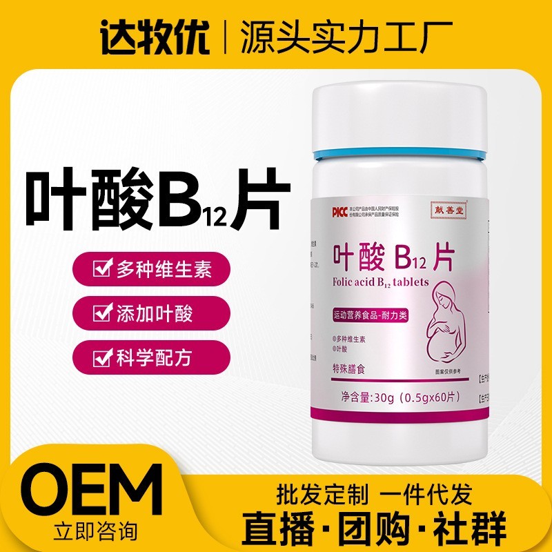 叶酸b12片成人中老年补充维生素叶酸片男女备孕早期厂家贴牌OEM