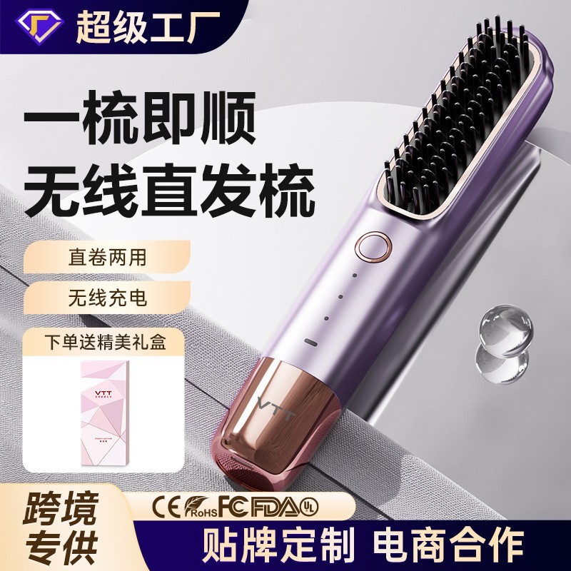 跨境直发梳负离子无线充电款便携式防烫不伤发女柔顺内扣