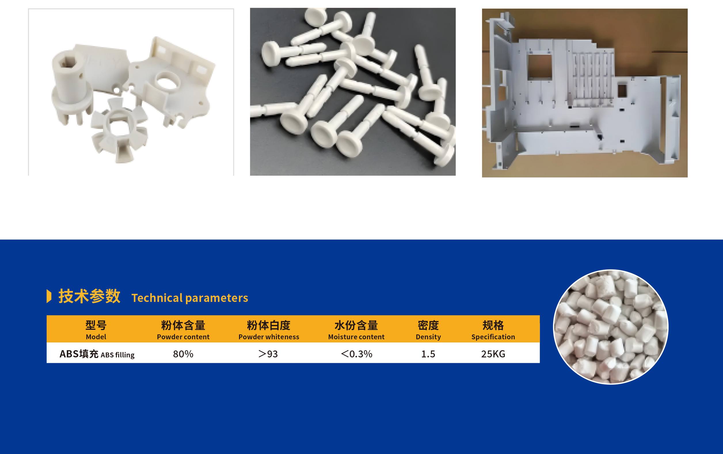 ABS 填充母料是一种以 ABS(丙烯腈 - 丁二烯 - 苯乙烯共聚物)为载体树脂,添加助剂,经混合、熔融挤出、造粒等工艺制成的功能性母料。它主要用于在不显著影响 ABS 制品主要性能的前提下,降低生产成本、改善加工性能或赋予制品特定功能。该专用母料主要用于 ABS 也可以用于 HIPS , PS ,AS 等制品。其作用是保证母料与待填充的 ABS 基材具有良好的相容性,确保填充剂均匀分散在基材中,避免因相容性差导致制品性能下降。ABS填充母料可显著降低 ABS制品的原材料成本,尤其适用于对性能要求不极高的大宗制品。可提高 ABS 的熔体流动性,减少加工过程中的能耗。合理根据需求平衡填充比例可改善制品的刚性、耐热性、尺寸稳定性等。以ABS为载体,与ABS 基材相容性优异,不易出现分层、开裂等问题。ABS 填充母料广泛应用于各类 ABS 制品的生产, 家电外壳,汽车零部件,玩具、日用品, 电子电器配件等。