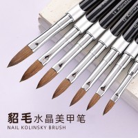 工厂定制貂毛美甲笔 黑色金属杆美甲水晶雕花笔Kolinsky笔刷