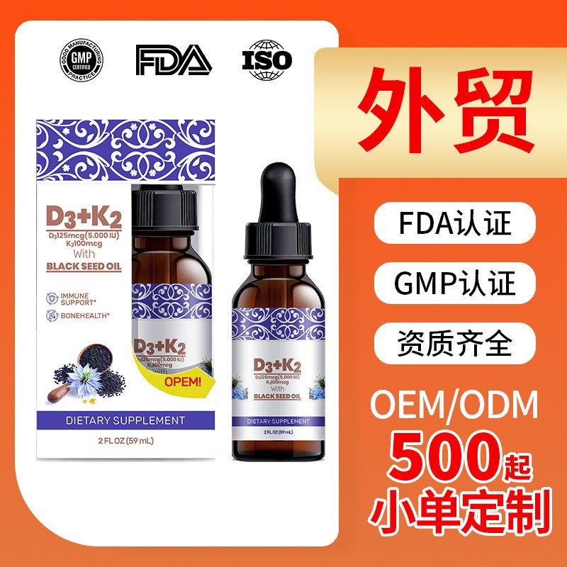 跨境外贸vitamind3k2黑籽油滴剂OEM定制贴牌维生素d3k2黑籽油滴剂