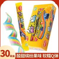 厂家生产长条糖定制礼盒包装彩虹夹心酸条糖橡皮糖软糖五彩长条糖