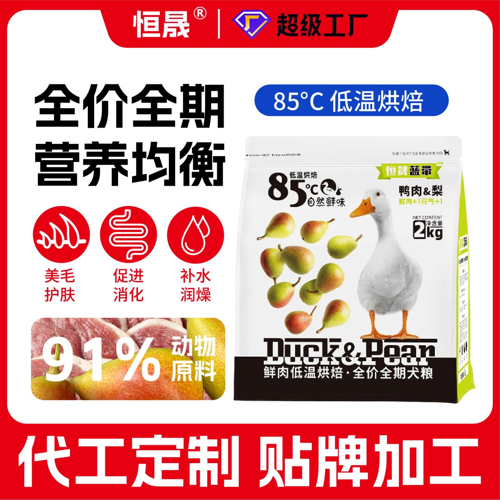 定制全价狗粮无谷鲜肉金毛泰迪成幼大小型犬狗粮OEM代工ODM烘焙粮