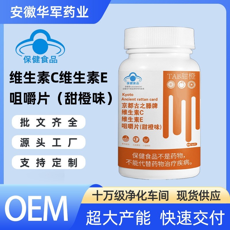 代工蓝帽补充VC维生素C维生素E甜橙味咀嚼片各种口味片剂定制厂家