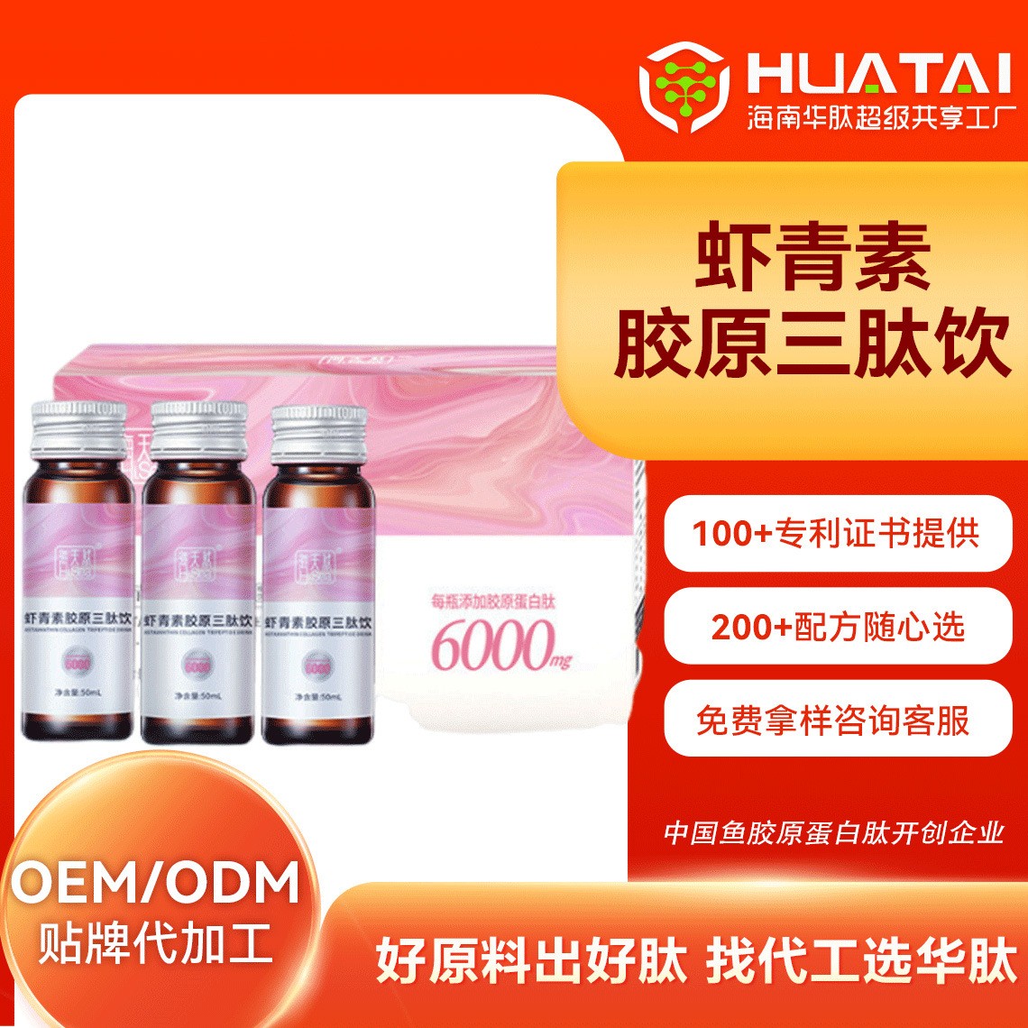 定制虾青素胶原三肽小分子肽口服液紧致美容营养50ml工厂,代加工平台