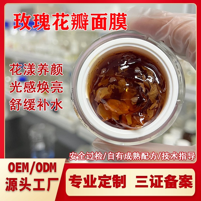 玫瑰花瓣面膜定制修护提亮补水保湿免洗睡眠代工厂OEM提亮肤色