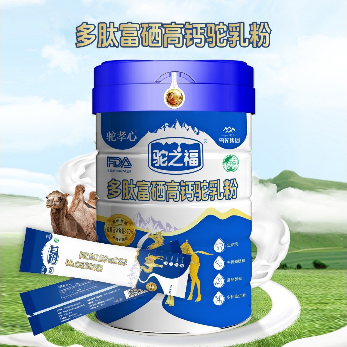 驼奶粉源头厂家驼之福多肽富硒高钙驼乳粉招商