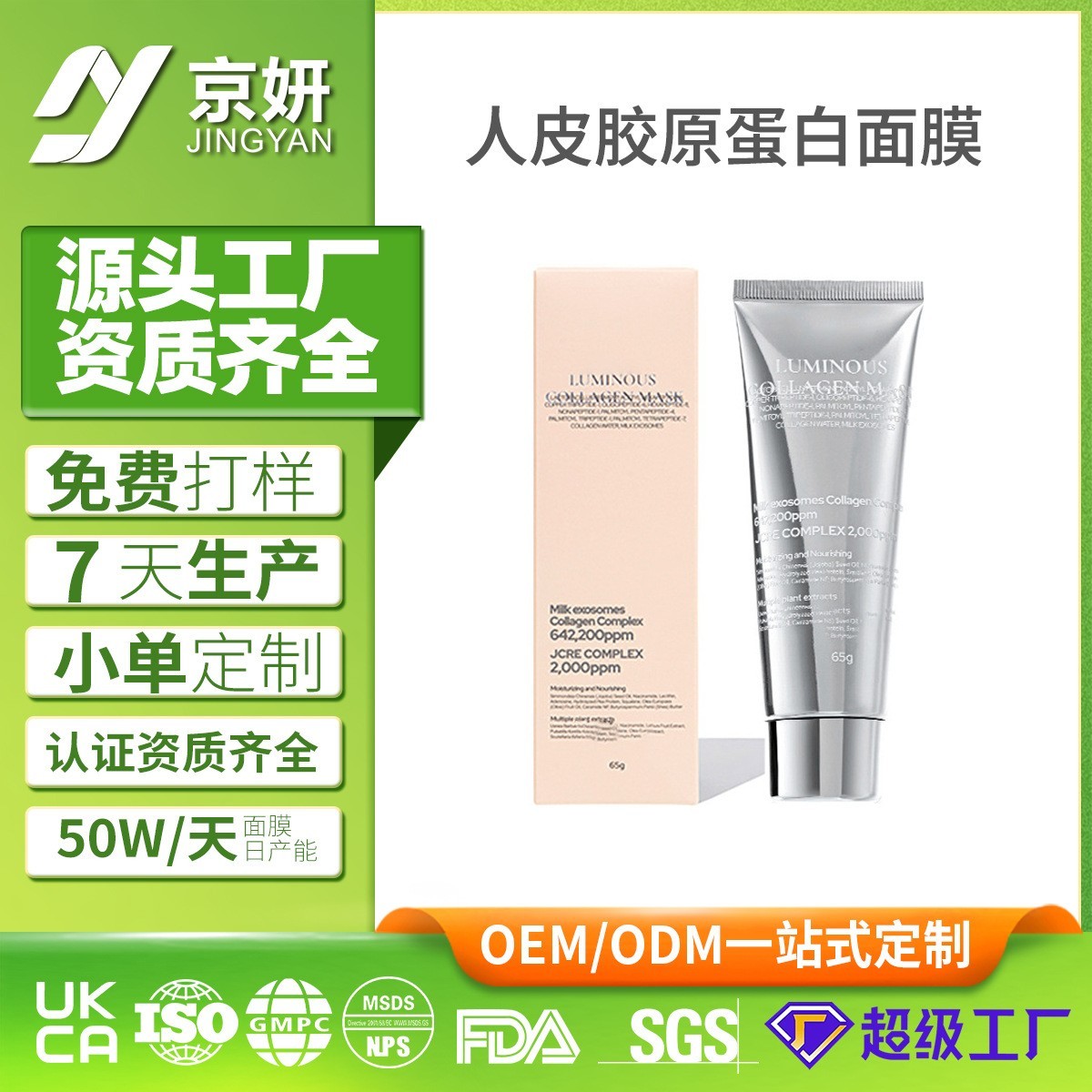 人皮胶原蛋白面膜OEM定制胶原蛋白撕拉面膜定制韦雪同款发光面膜