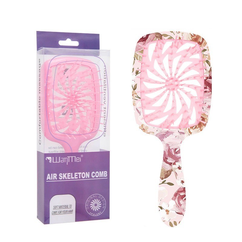 源头工厂水贴工艺镂空梳不易磨损掉色梳齿圆润不伤发蓬松美发梳子