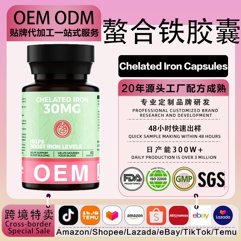 OEM氨基酸螯合铁富铁胶囊 高含量铁叶酸生理女气血缺铁贫血甘氨酸,代加工平台