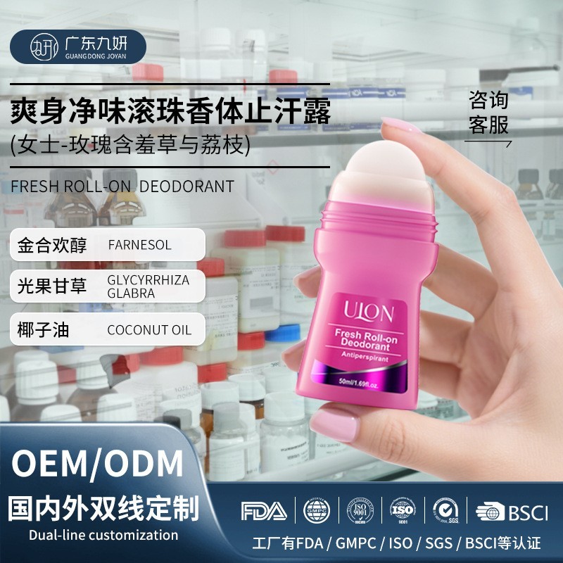 OEM定制清新去异味止汗露女腋下玫瑰香体液走珠清爽滚珠香体露ODM