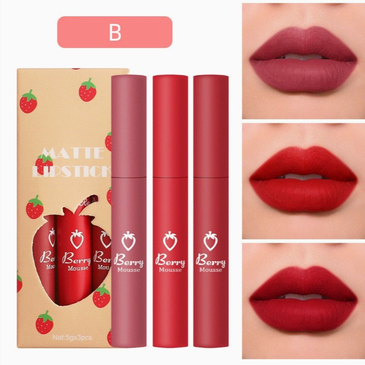 唇彩三支装化妆品工厂雾面哑光唇釉套装持久不粘唇彩滋润彩妆口红