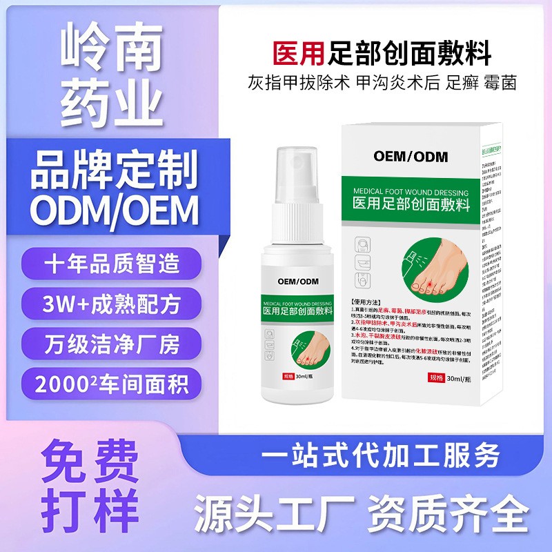 定制医用足部创面敷料贴牌臭脚喷雾剂去脚气水泡脚止痒脱皮药喷剂,代工智造