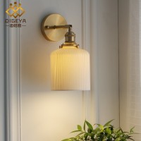 日式黄铜陶瓷壁灯新中式北欧简约卧室床头灯复古过道玄关镜前壁灯