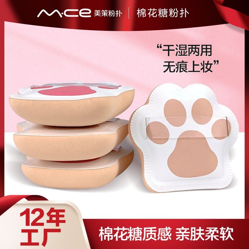 可印logo美妆工具透明丝带干湿两用粉扑rubycell猫爪棉花糖粉
