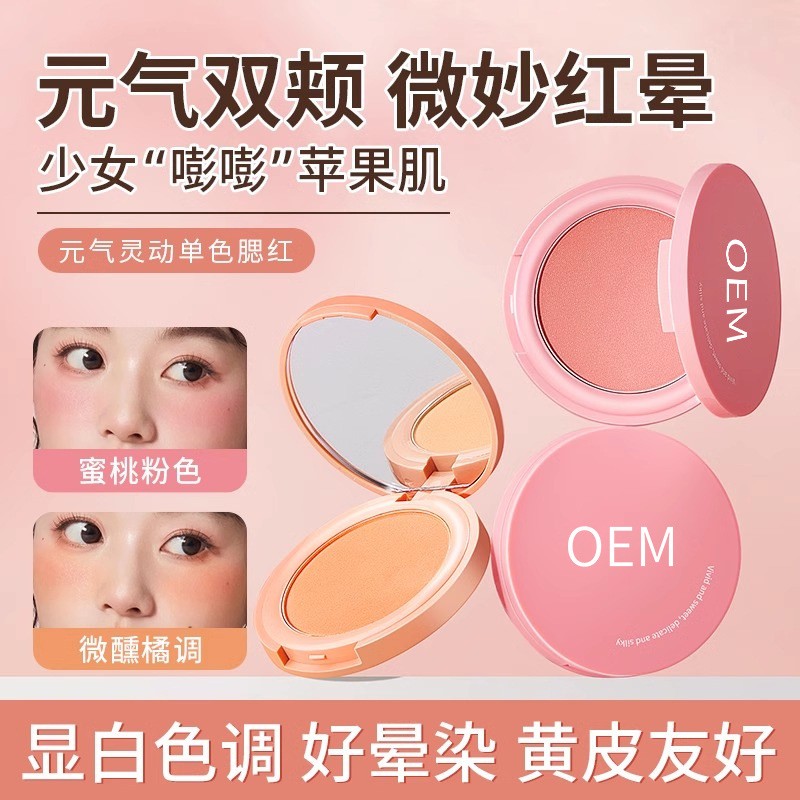 元气灵动单色腮红定制OEM显白哑光提亮自然裸妆微醺橘色贴牌加工