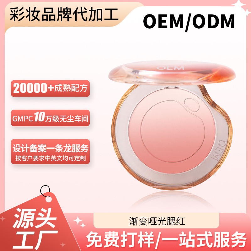 OEM定制哑光腮红加工女渐变膨胀色腮紫自然高光修容盘贴牌代加工