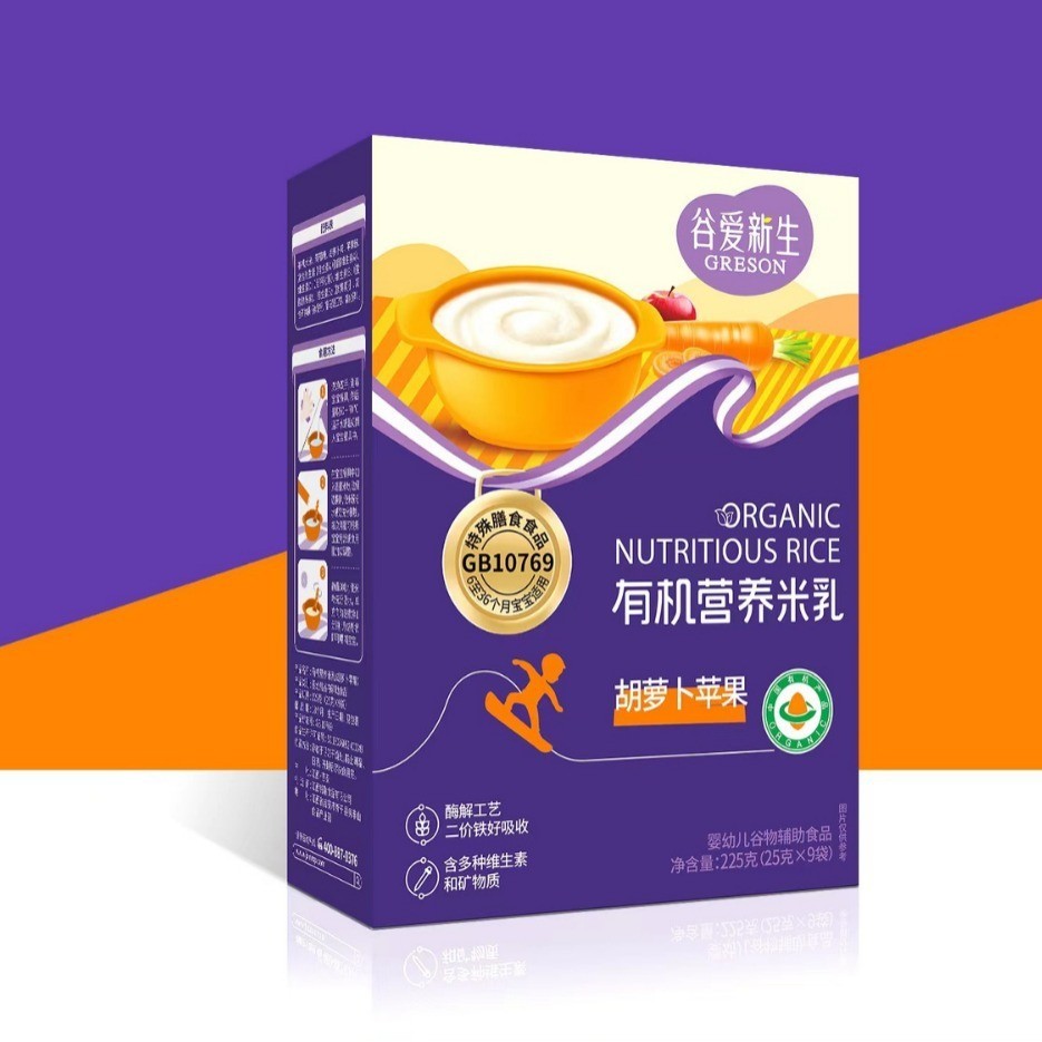 加强铁有机米乳*9袋,胡萝卜苹果有机米乳*9袋,益生菌有机米乳*9袋,强化钙铁锌有机米乳*9袋