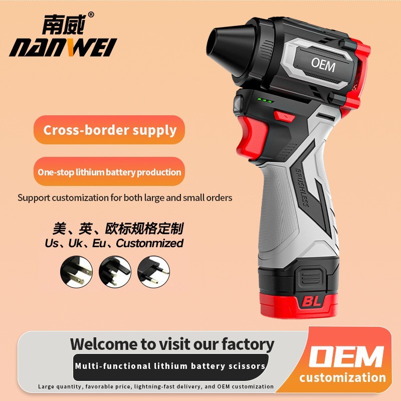 跨境定制无刷锂电涵道手持暴风机吸吹两用吹尘吹雪车内清洁吹风机