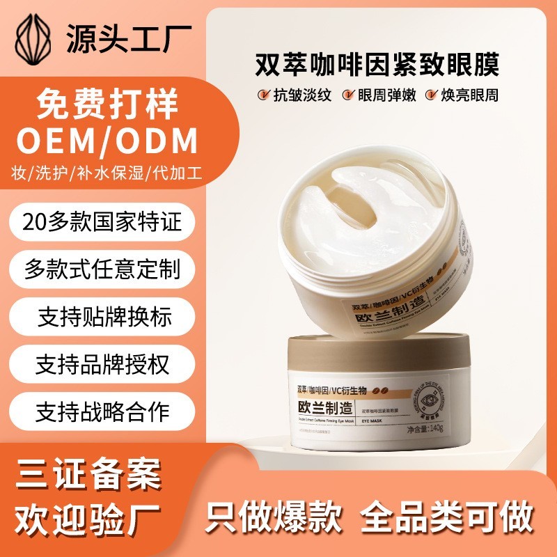 抖音定制双萃咖啡因眼膜提拉紧致补水保湿淡黑眼圈细纹眼袋OEM
