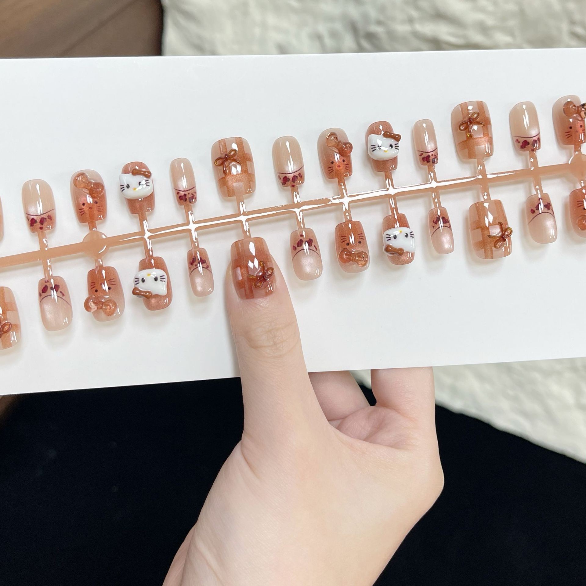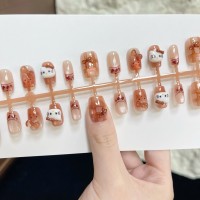 抖音新款美甲卡其kt猫穿戴甲可爱假指甲成品甲片预制