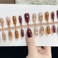 秋冬新款美甲撞色拼搭豹纹手工贴片穿戴甲显白高级感手工穿戴甲