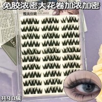 10排免胶90朵浓密大花卷加浓加密,180簇免胶浓密大花卷睫毛书,免胶弯镊【颜色随机】