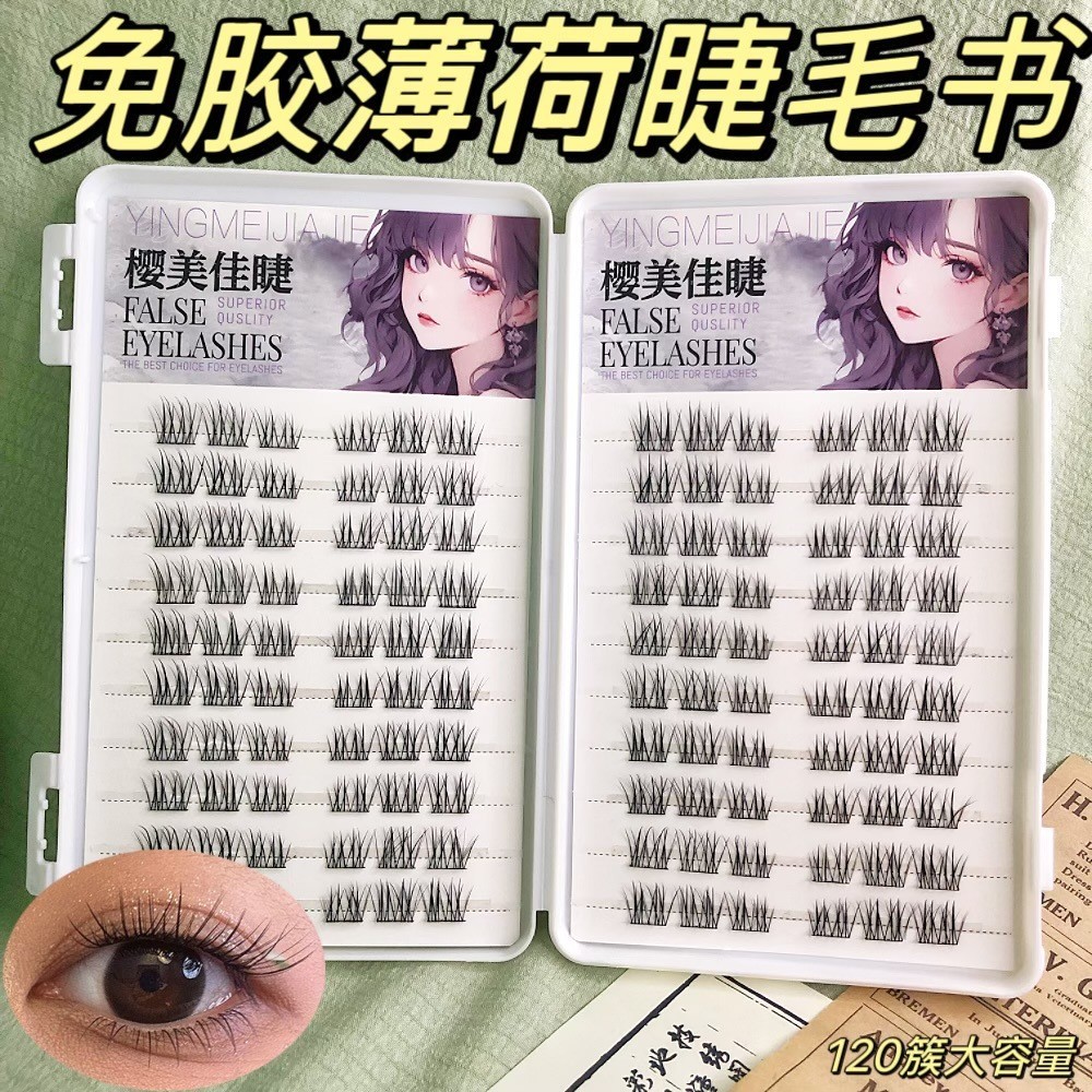 樱美佳睫免胶大容量爆款淡颜系小薄片薄荷睫分段仿真自然假睫毛