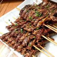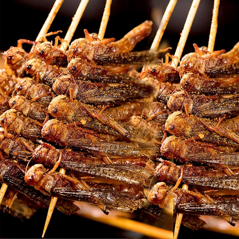 蚂蚱串蚱蜢串湘西小串烧烤食材铁板小肉串油炸烤肉8只一串20串1包