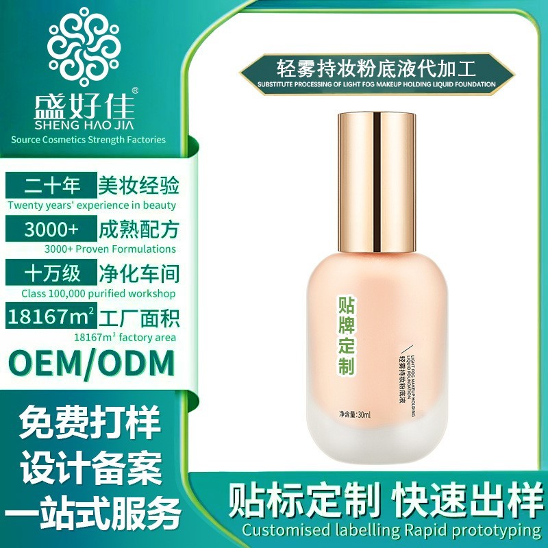 定制贴牌轻雾持妆粉底液雾面轻薄服帖遮瑕控油不脱妆自然防水防汗