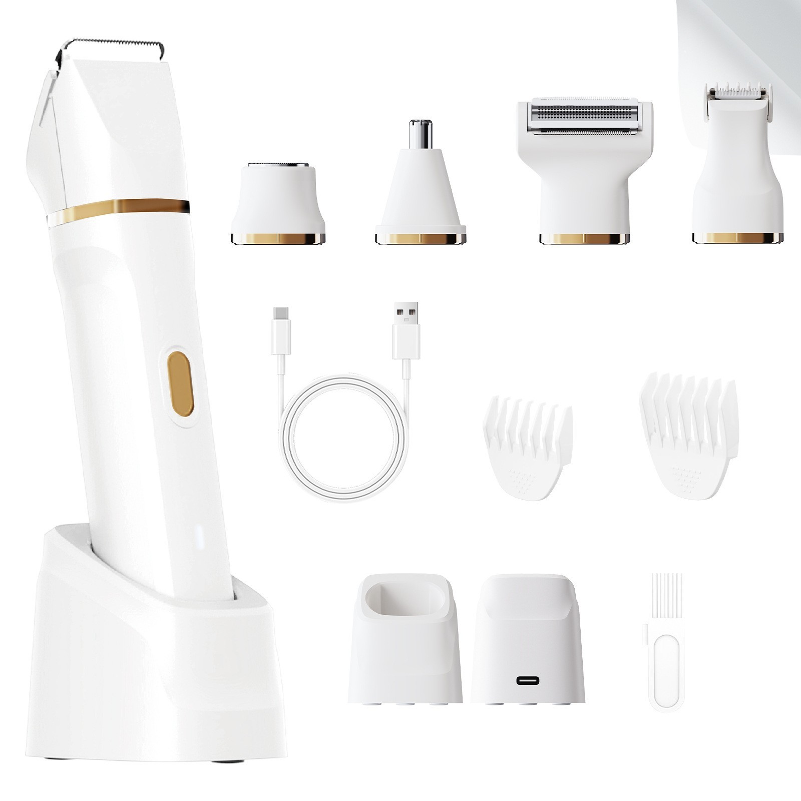 跨境新款剃毛器套装五合一USB充电电动脱毛器腿毛腋毛体毛修剪器