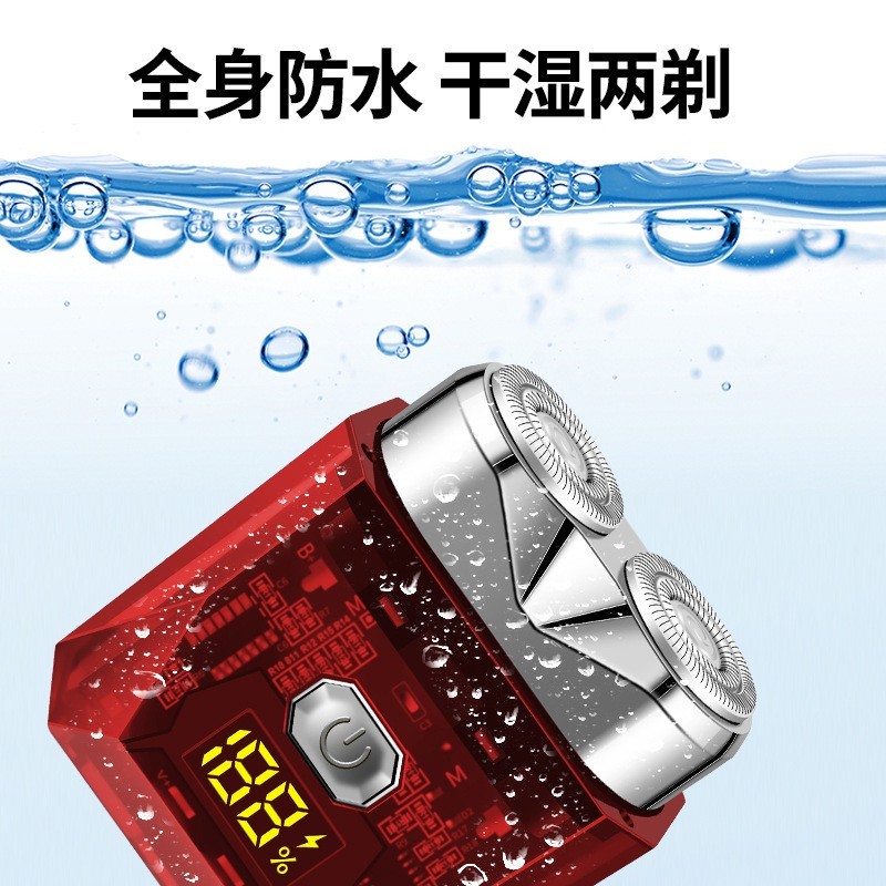 新款双头便携迷你电动剃须刀透明数显刮胡刀男士USB充电车载防水
