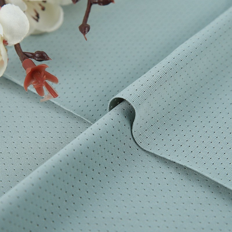 涤氨提花网眼布夏季凉感速干防晒运动服T恤面料提花小孔针织面料