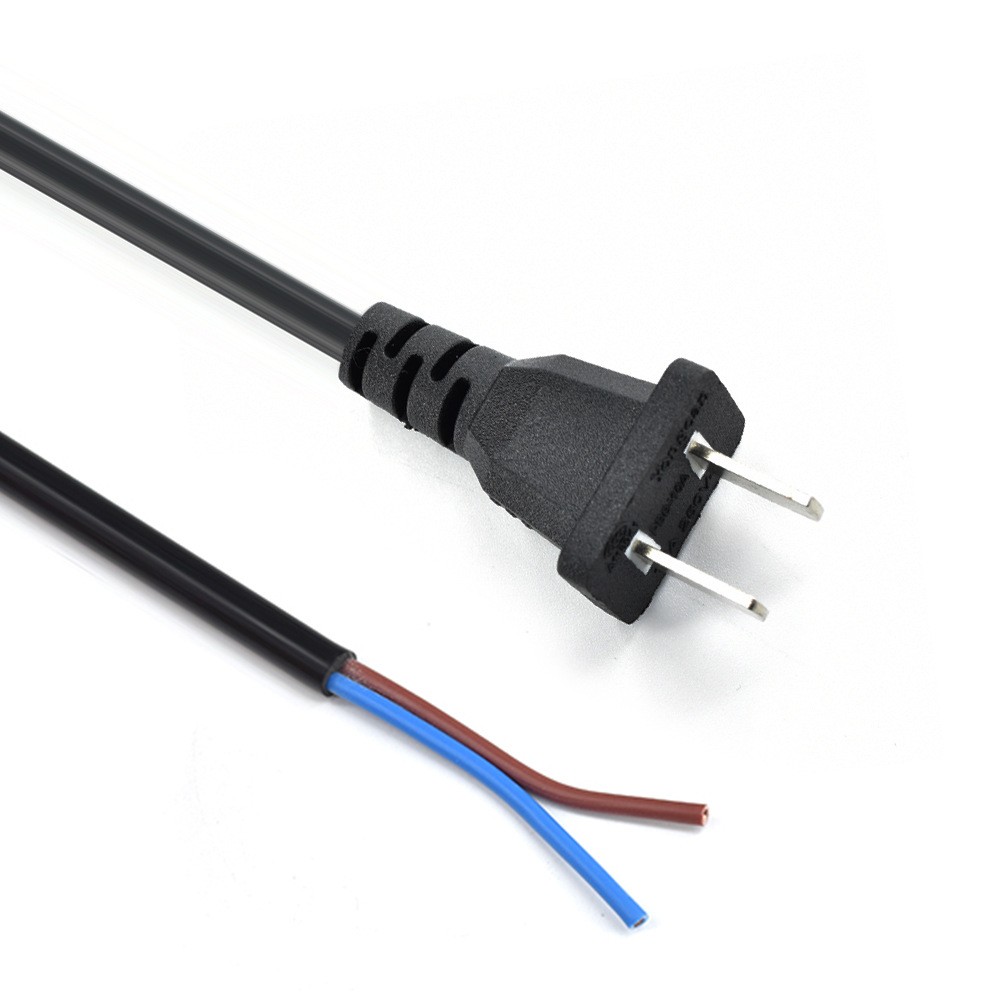 黑色0.75平方3C认证纯铜国标电源插头线两扁单头两芯裸线尾连接线