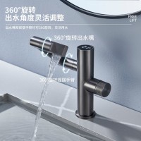 枪灰色铜洗脸盆冷热数显水龙头洗手盆面盆台下盆机械臂万向龙头