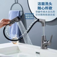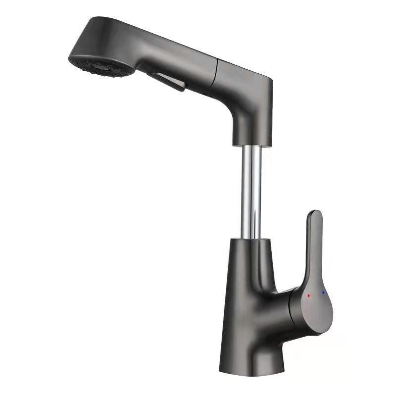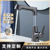 枪灰色抽拉式洗脸盆水龙头冷热可升降旋转伸缩面盆龙头洗头洗手池