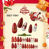 24片穿戴甲圣诞指甲穿戴甲圣诞老人麋鹿杏仁水滴甲美甲工厂定制
