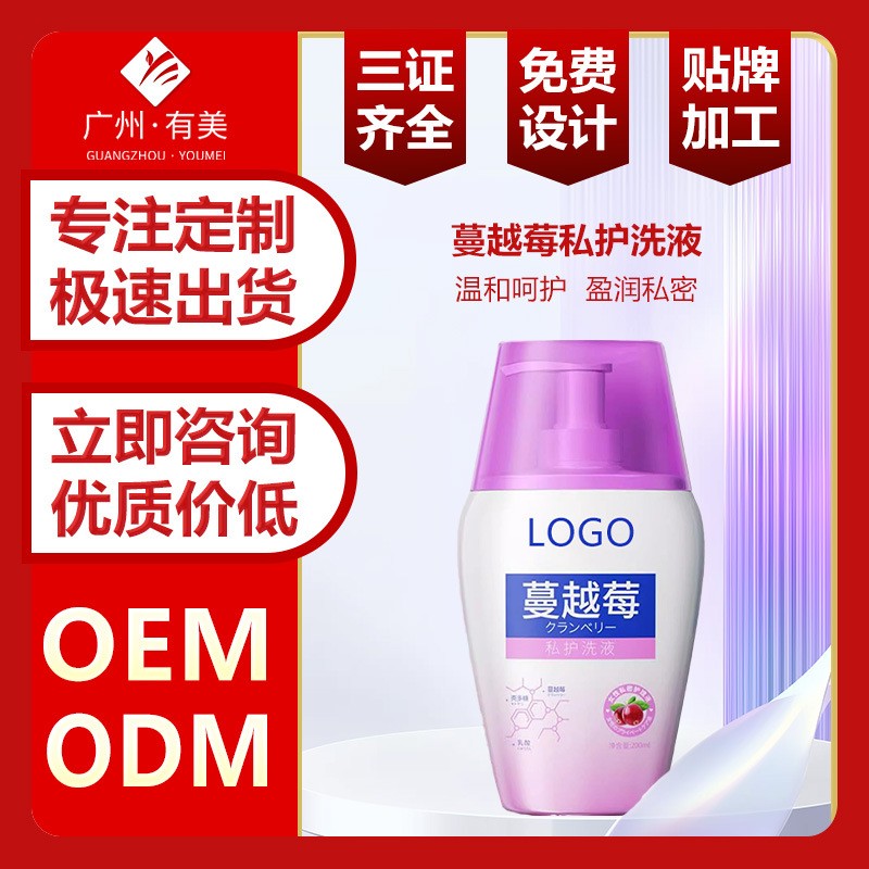 蔓越莓私护洗液定制加工抑菌止痒去异味清洗液贴牌私密护理OEM,代加工平台