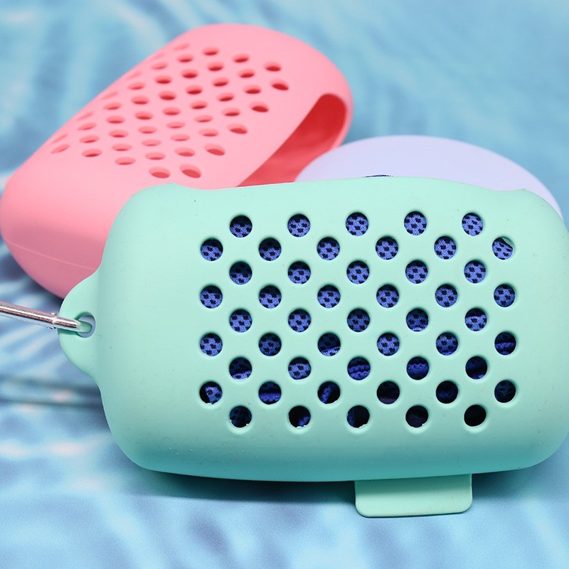 定制硅胶毛巾套 户外汗巾便携式收纳包 硅胶冷感毛巾套冰巾保护套