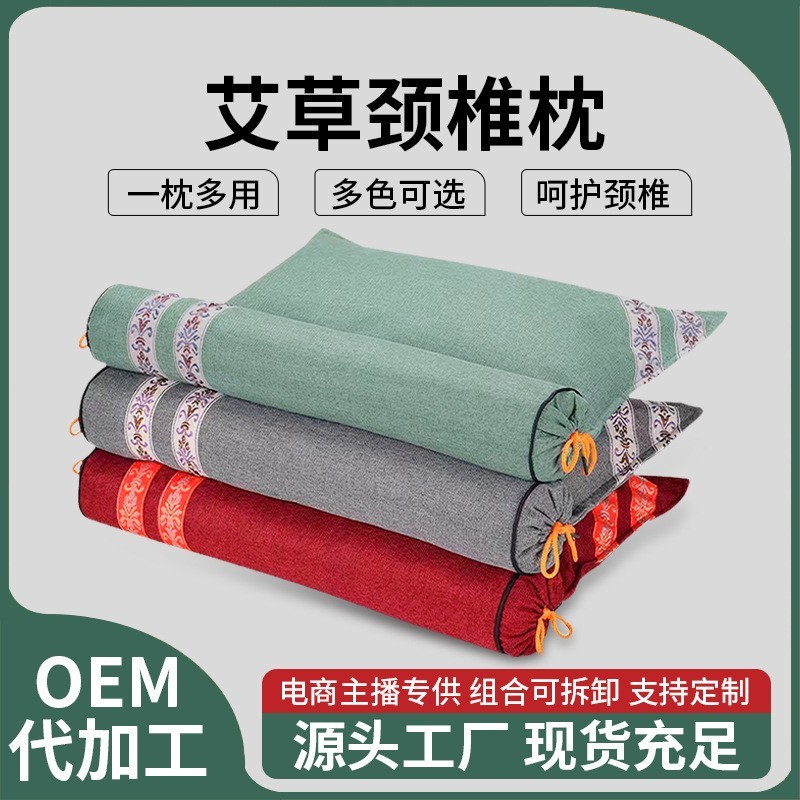 艾草连体枕颈椎枕可拆分连体枕艾灸宫廷枕护颈枕艾草枕头