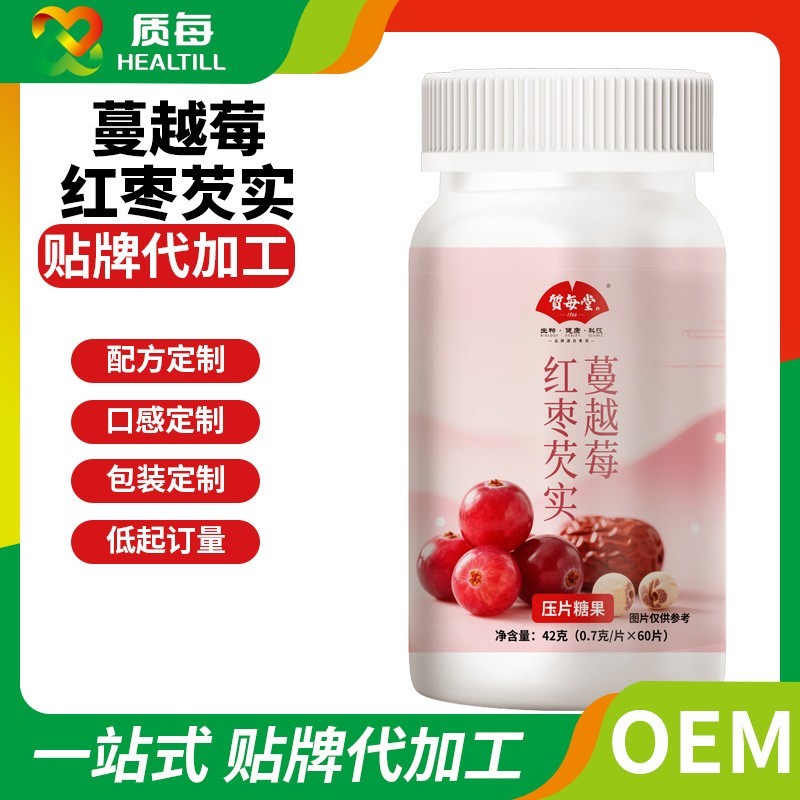 蔓越莓红枣芡实片定制压片糖果代加工 特膳运动营养片剂贴牌OEM
