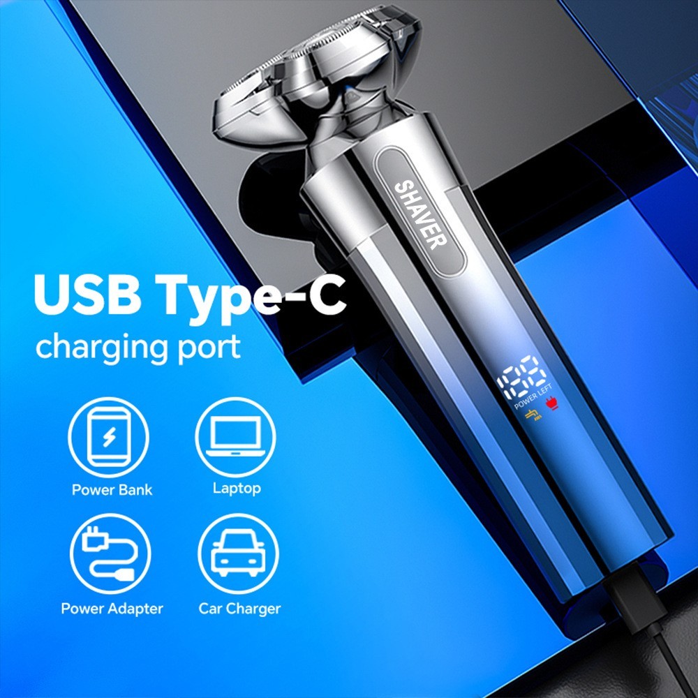 电动剃须刀三刀头刮胡须刀智能感应TYPE-C充电厂家