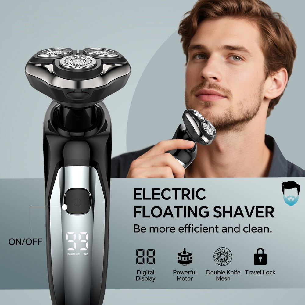 电动剃须刀男士浮动三刀头胡须刀USB充电全身水洗多功能刮胡子刀