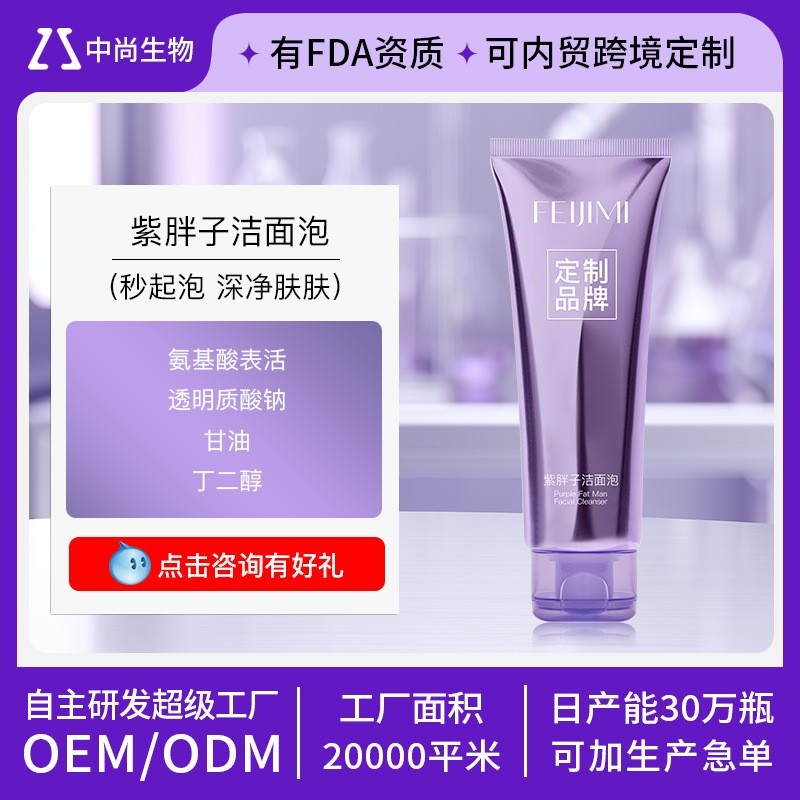 紫胖子洁面泡贴牌深层清洁氨基酸洁面乳净澈毛孔洗面奶代加工OEM