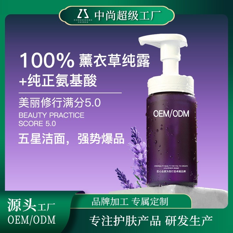 薰衣草氨基酸洁面慕斯贴牌ODM男女控油保湿不紧绷洗面奶代加工OEM