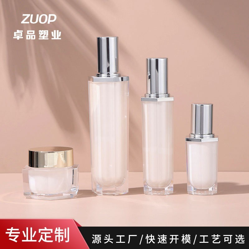 定制亚克力六角贴片瓶珠光白化妆品瓶水乳膏霜喷雾分装瓶